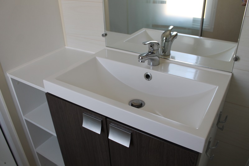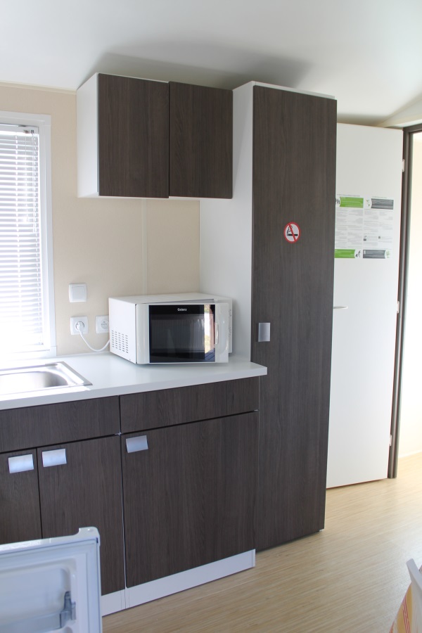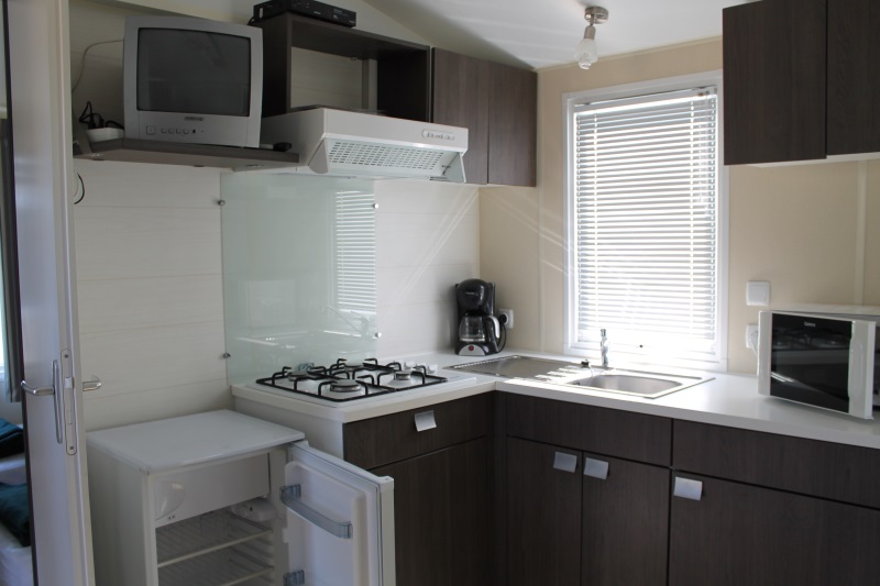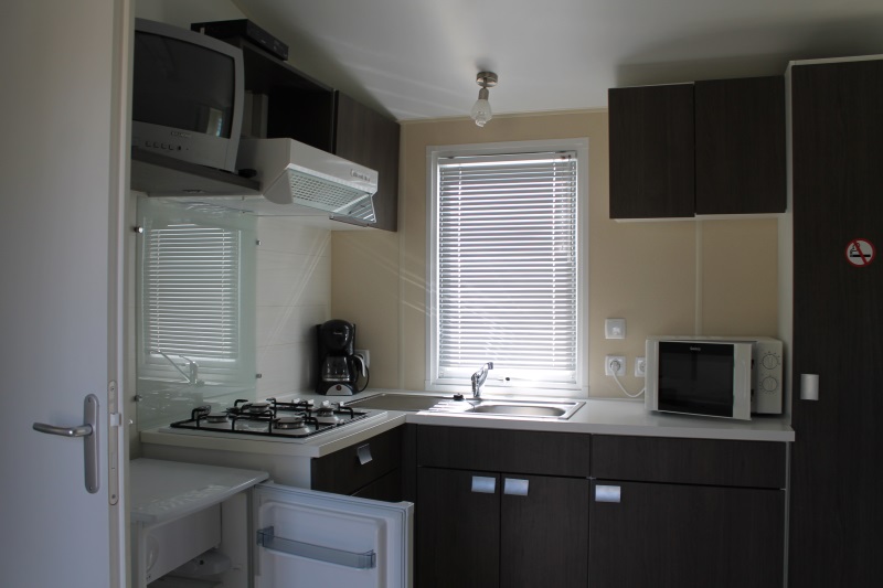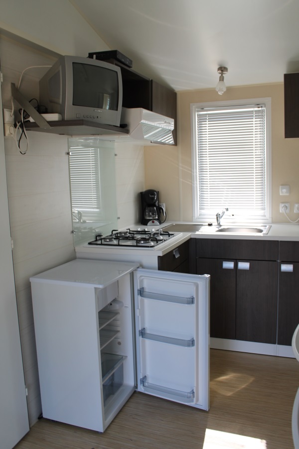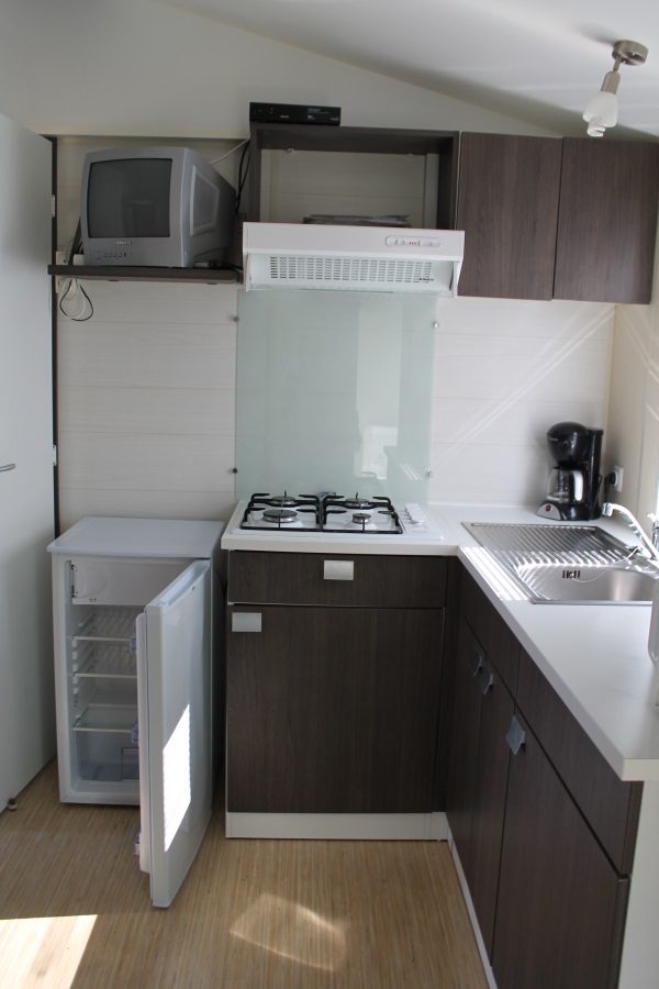 Chaque mobil-home dispose d’un même petit coin cuisine