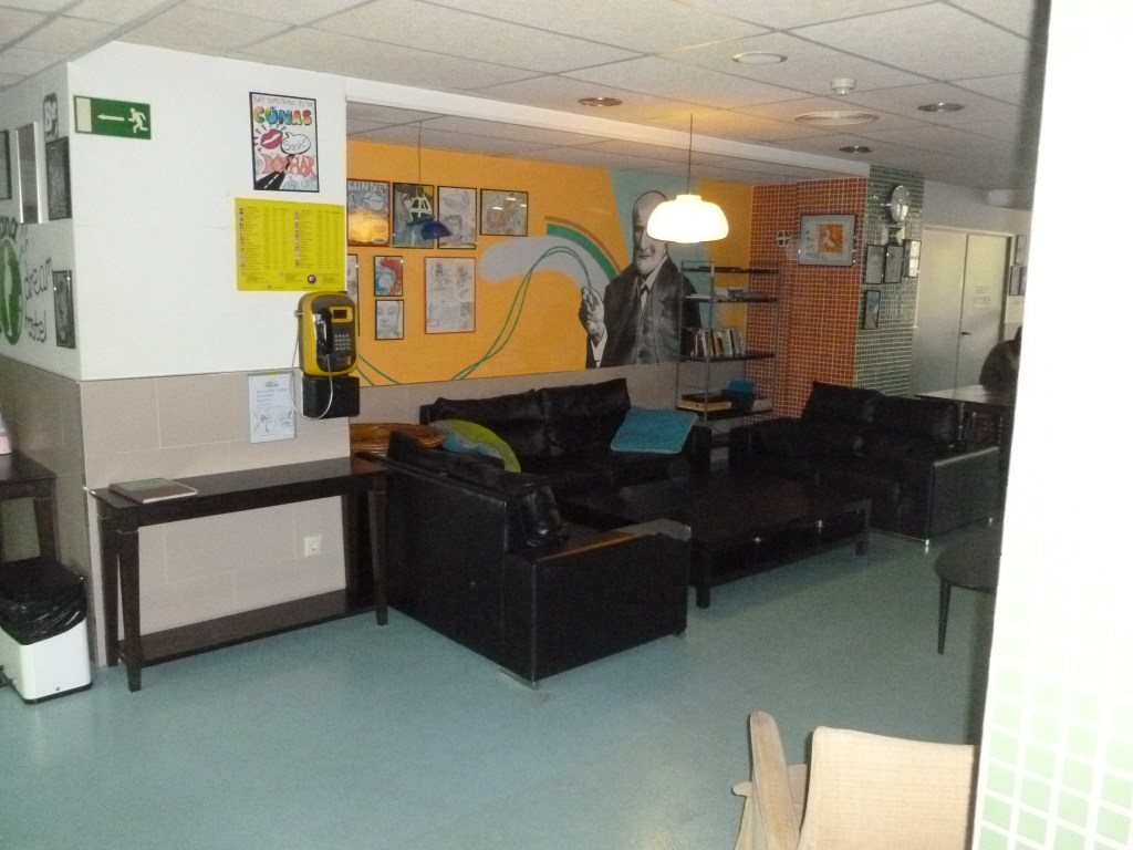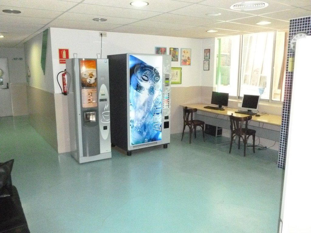 Coin détente à l’accueil avec accès aux ordinateurs et distributeurs de boissons et de nourritures