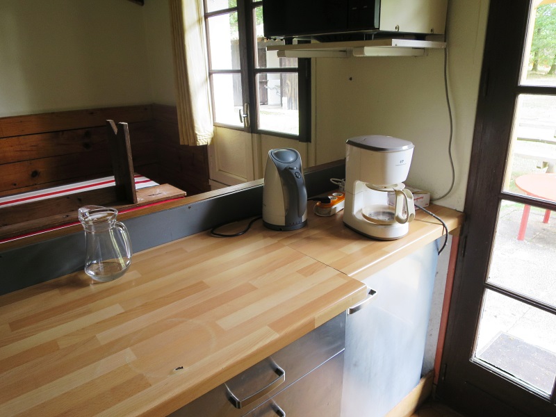 Poêle à disposition (bois fourni dans les caisses à l’extérieur en face du bureau)