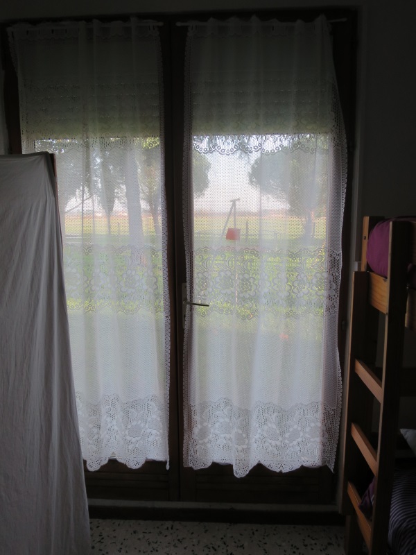 Elle donne sur un balcon. Attention si utilisé, accompagner les vacanciers car peu sécurisé