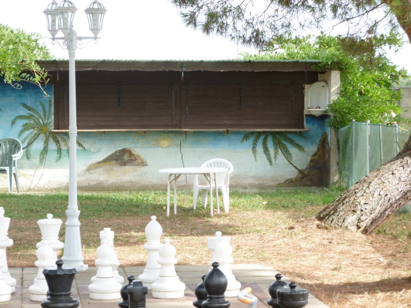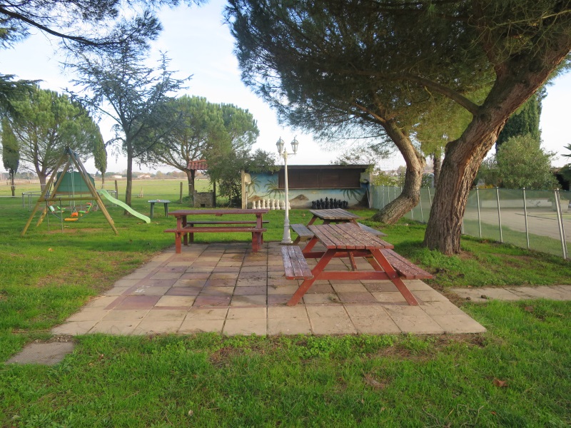 Matériels mis à disposition : Jeux d’échecs géants, trampoline, balançoire, filet de badminton + table de ping-pong (avec prêt du matériel) et boulodrome
