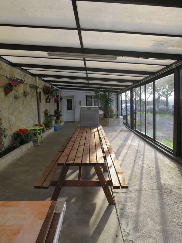 Terrasse : 2 vérandas de chaque côté de la structure (billard, babyfoot et jacuzzi à disposition) Une véranda peut être chauffée par la cheminée.