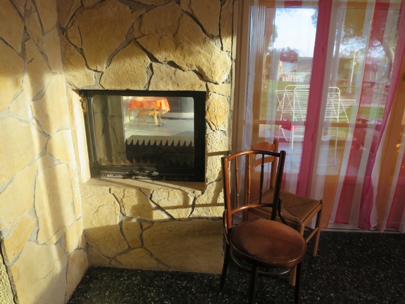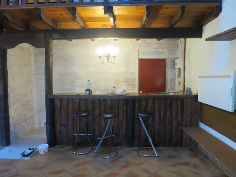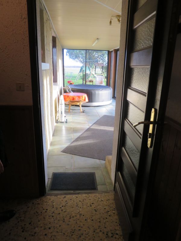 RDC : L’espace salon est composé de 2 canapés, d’1 télévision et d’un double insert donnant sur la véranda avec le jacuzzi (bois payant, 1€ la buche compressée (durée 1h))