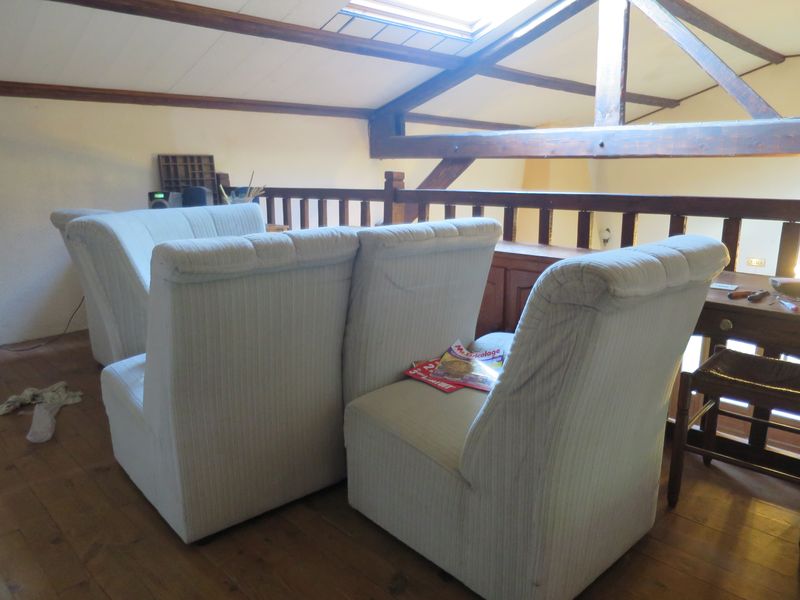 1er étage : La pièce dispose de 3 canapés et d’une Tv et d’un lecteur Dvd.