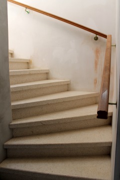 Escalier du rdc au 1er étage avec petites marches en béton et rampe
