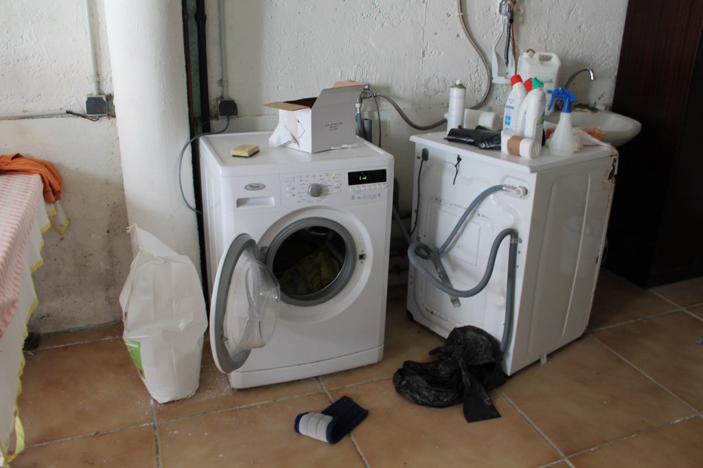 1 laverie est disponible dans un petit bâtiment extérieur, avec 1 machine à laver et 1 sèche-linge