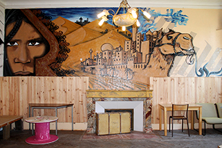 La salle se trouve au rez-de-chaussée du bâtiment principal. Elle possède des tables et des chaises