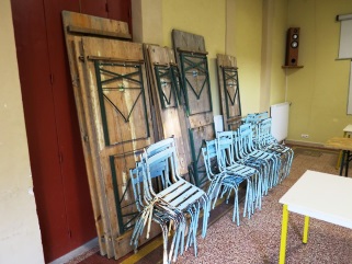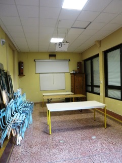 Cette salle est équipée de chaises et tables pouvant servir de réfectoire pour 40 personnes en Rdc.