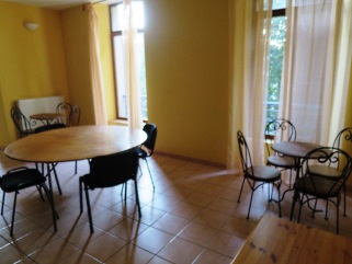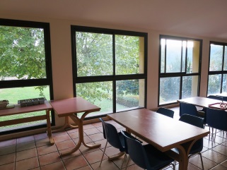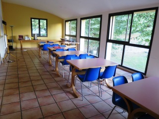 Cette salle est équipée de chaises et tables pouvant accueillir environ 20 personnes au 1er étage avec une vue sur le parc