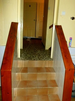 Petit escalier menant aux sanitaires : 4 marches carrelées