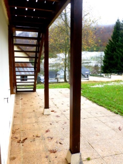 Préau : Petit abri couvert sous l’escalier extérieur, sur la façade principale du chalet