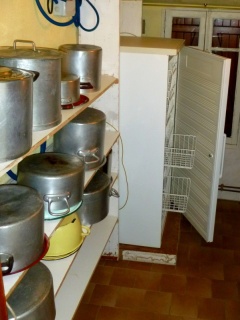 Le chalet dispose d’une grande cuisine tout équipée, ainsi que de 6 autres petits coins cuisines, chacun équipé d’un lavabo, d’une petite gazinière et d’un petit réfrigérateur.