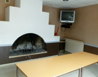 La salle tv comprend des tables, chaises et une cheminée. Le bois est fourni quand le stock le permet (à vérifier en amont)