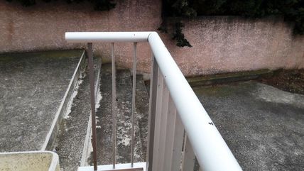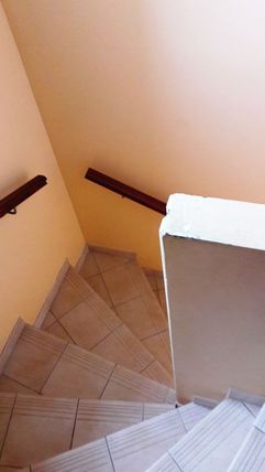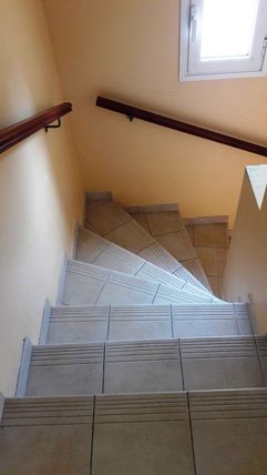 Escalier intérieur en colimaçon avec marches pleines (carrelage) avec 1 rampe