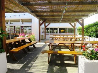 Le site dispose d’un réfectoire pour 700 places et d’une pergola pour les repas extérieurs