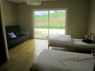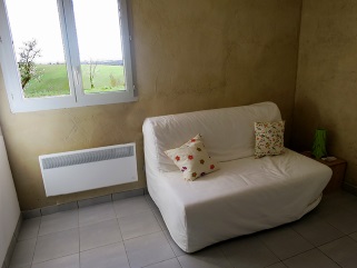 Pièce avec canapé, peut servir de bibliothèque ou de pièce de repos. Cette pièce sert de communication entre les 2 gîtes.