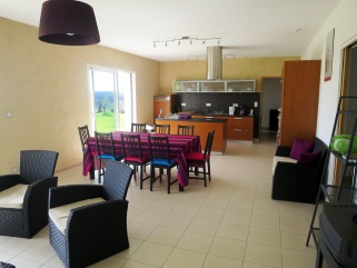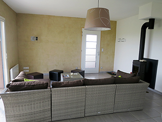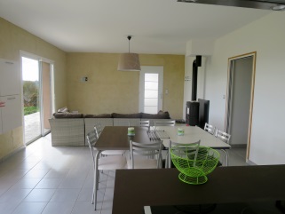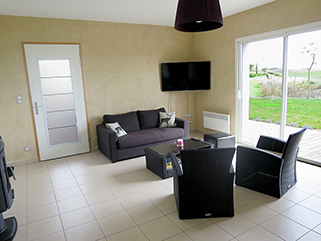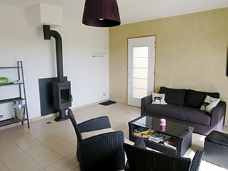 L’espace salon est composé de 3 fauteuils, un canapé, télévision écran plat et poêle à bois (bois fourni)