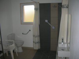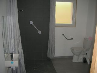 Pas d’escaliers mais une rampe d’accès extérieur pour les fauteuils
