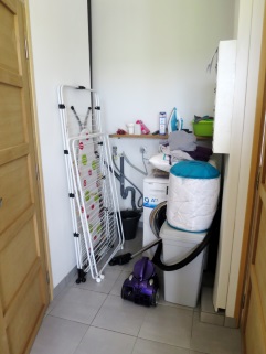 Stockage dans la malle fermée à clé (cadenas fourni) dans la buanderie