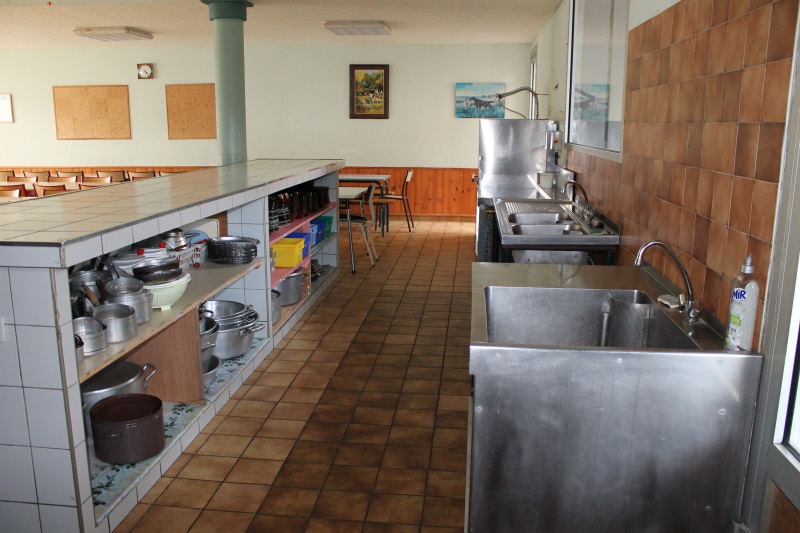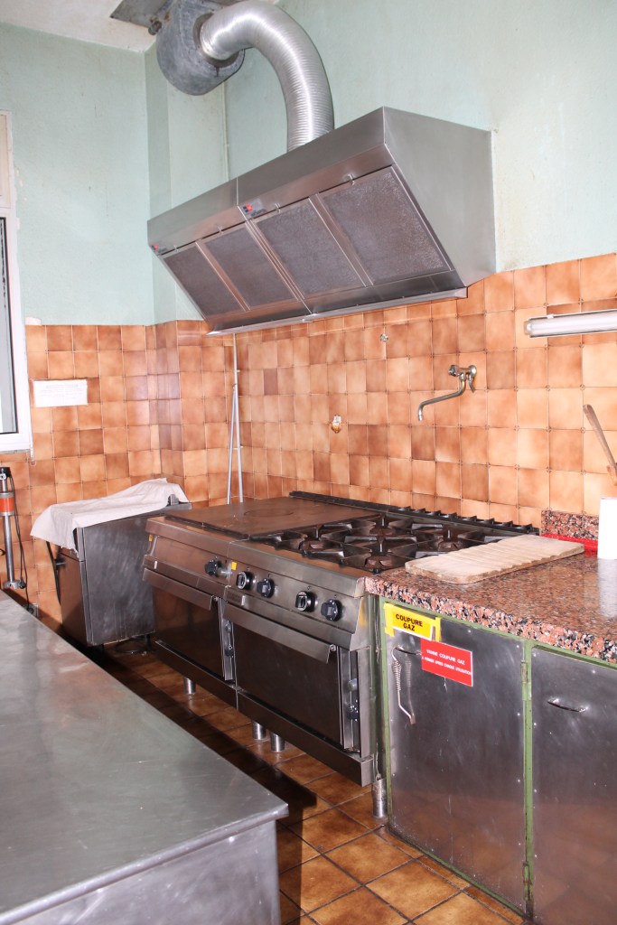 La cuisine ne se ferme pas à clé, ouverte sur le réfectoire