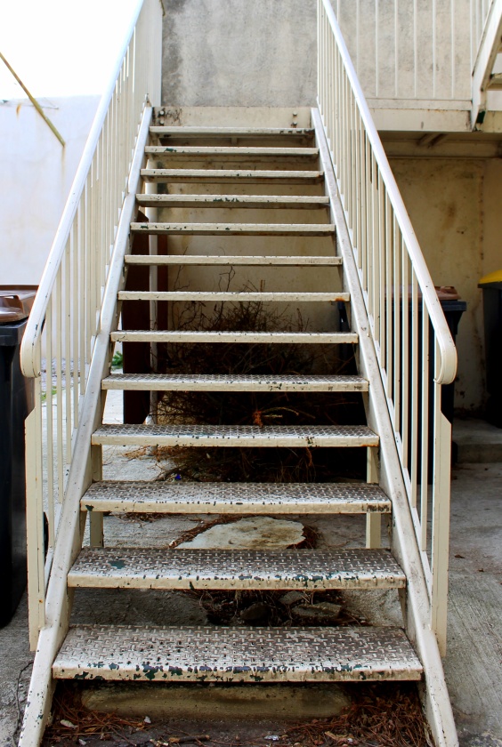 Escalier de secours 1en fer avec 1 pallier et 1 rampe de chaque côté