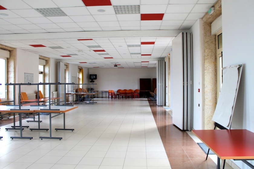 La réfectoire possède 9 tables et 54 chaises. La pièce donne sur la terrasse.