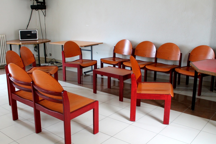 Elle possède des tables et des chaises, un canapé (sur demande), une Tv sans antenne, un vidéoprojecteur et 1 frigo.