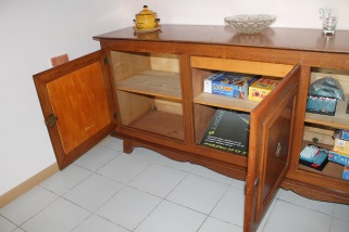 Stockage dans la malle fermée à clé dans le placard du salon