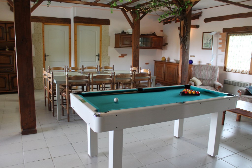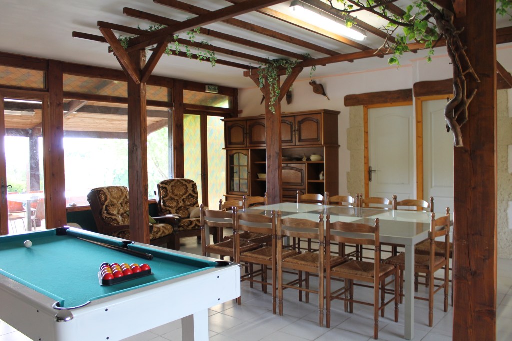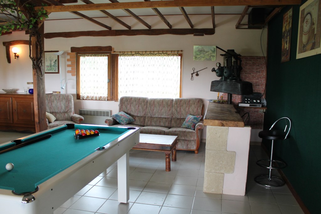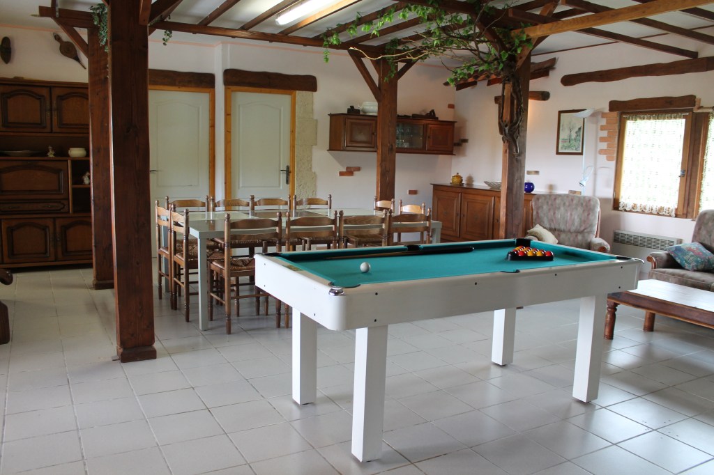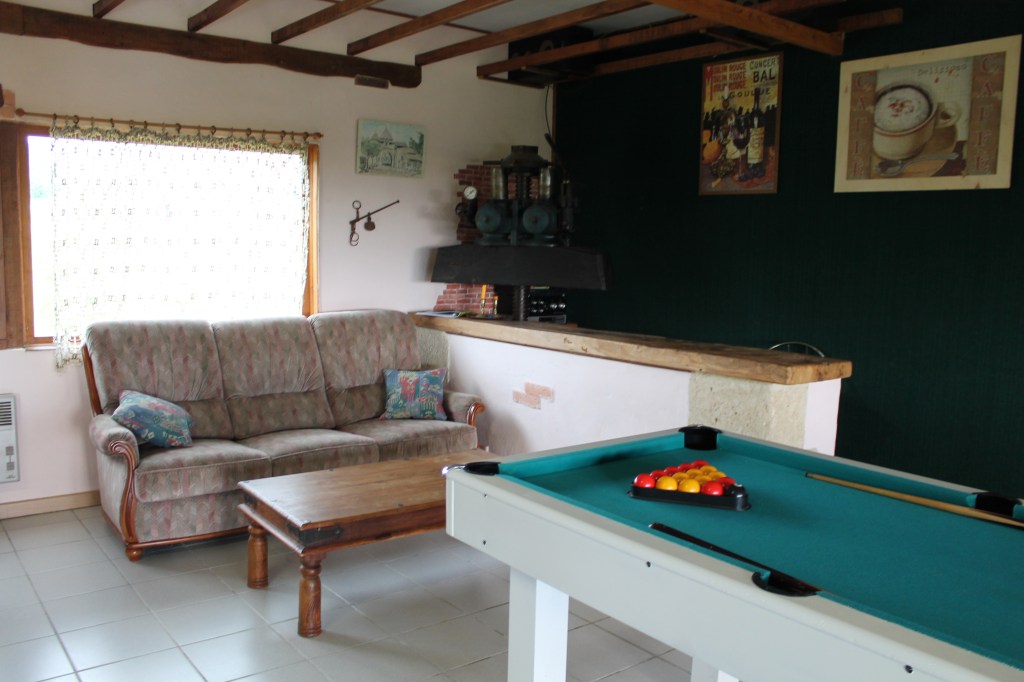 Elle possède un billard, une chaine Hifi avec basses et des jeux de société.