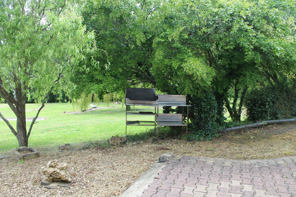 - 1 piscine hors sol, non accessible au groupe car non surveillée. Elle est bâchée et fermée avec 1 cadenas.