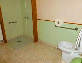 2 douches collectives au rez-de-chaussée, les 2 accessibles aux fauteuils