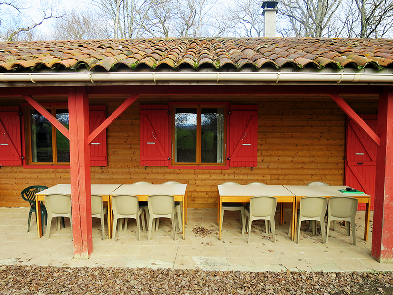 Terrasse : Abritée avec tables et chaises de jardin, 1 barbecue, 1 boulodrome et 1 piscine clôturée sans alarme et sans surveillance (500 m de la structure)