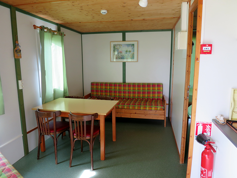 Chalet avec 1 banquette, 1 table et des chaises