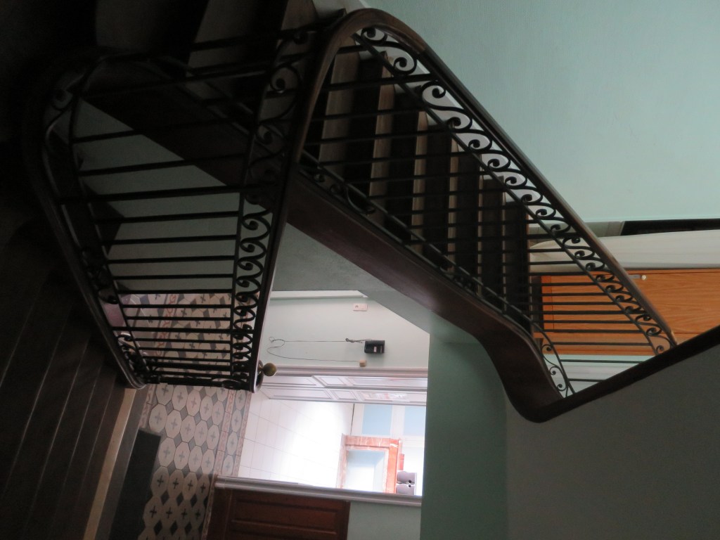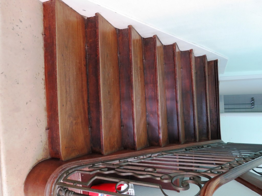 2 Escaliers intérieurs. Escaliers en bois avec pallier. Marches pleines.