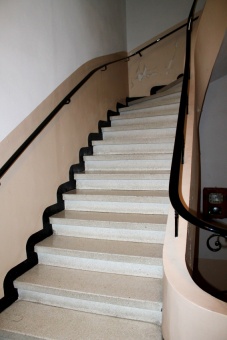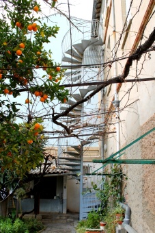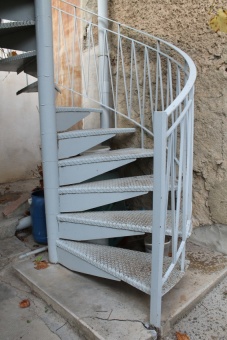 Escalier en colimaçon, marches non pleines, donne accès sur cour intérieure
