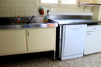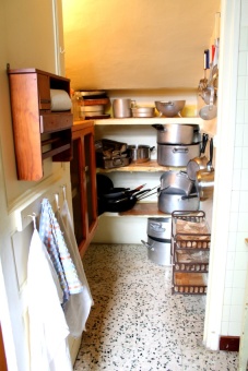 Stockage dans le premier placard à droite, à l’entrée de la cuisine.